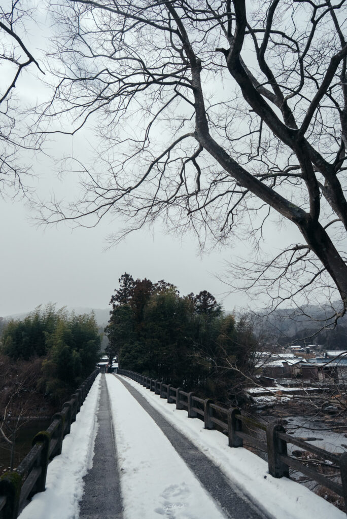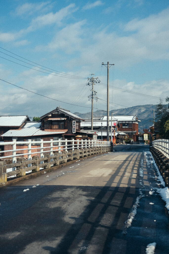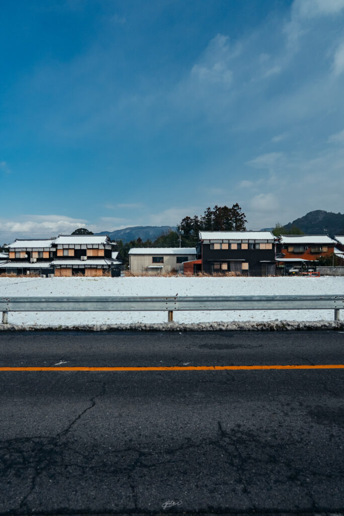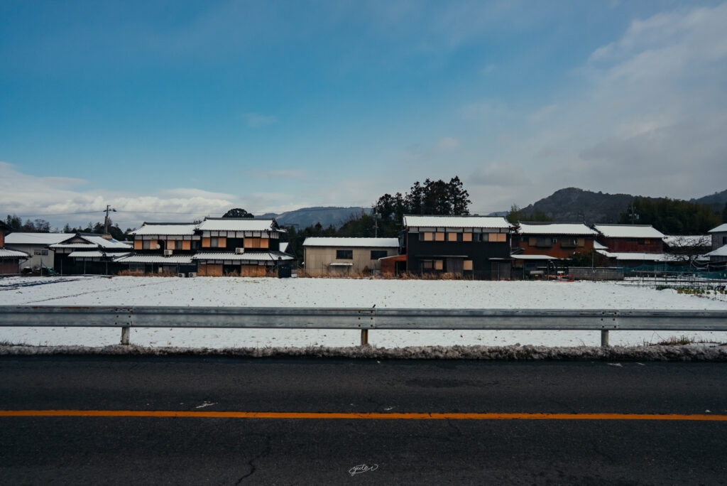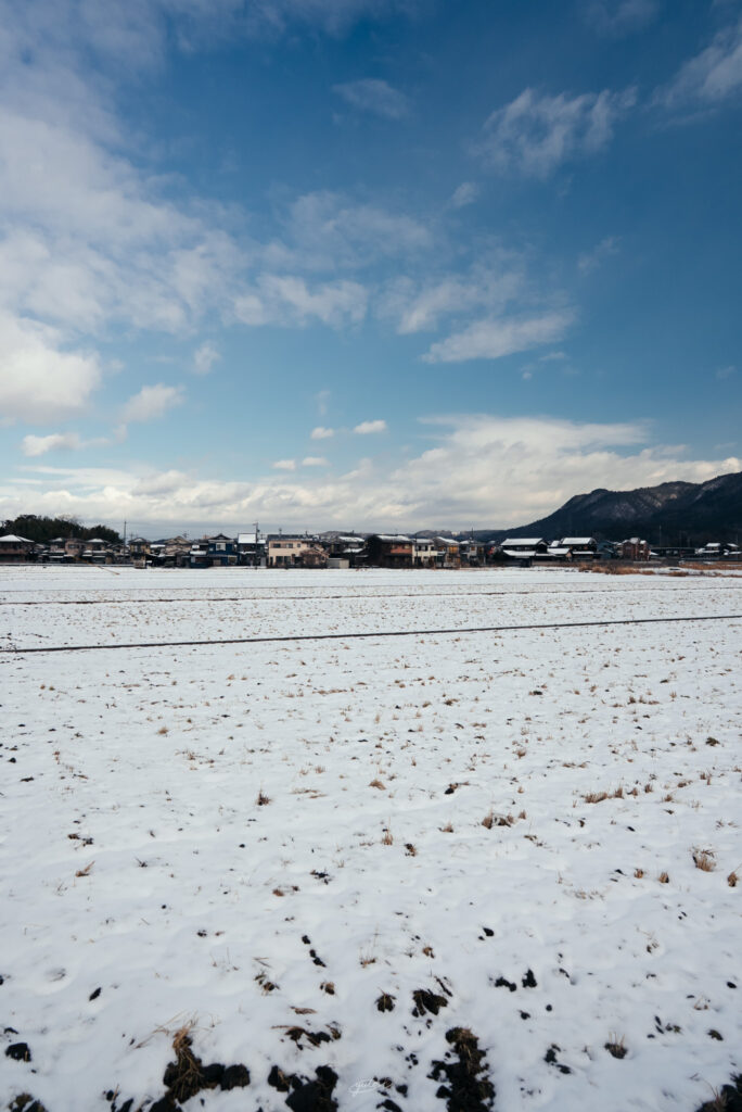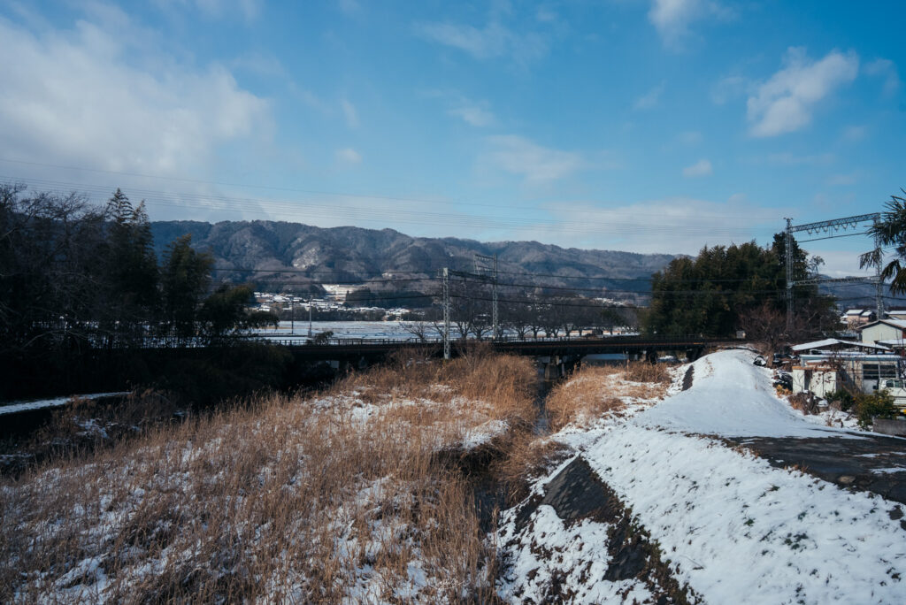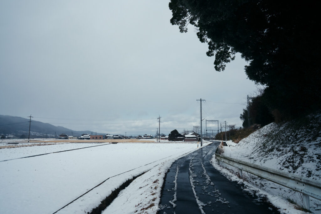 滝川という宇陀川に流れ込む川を渡ります。今回のお目当ては赤目四十八滝ではなく真っ白な田園風景なのです。
