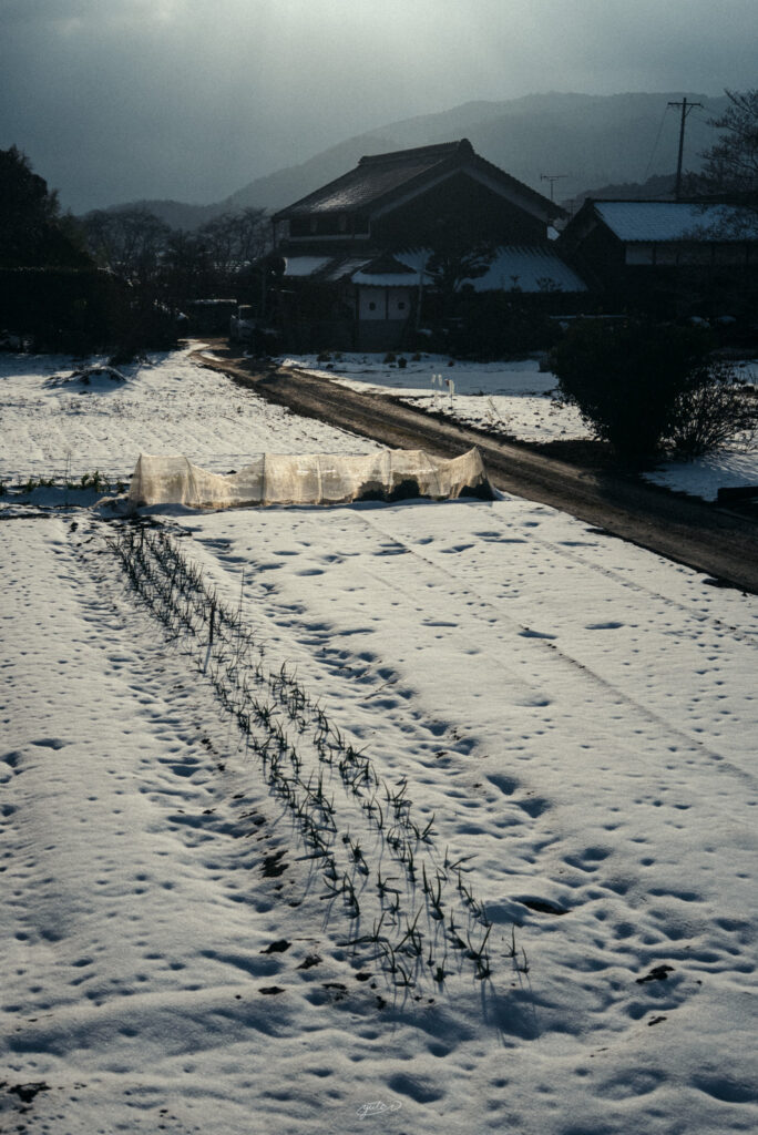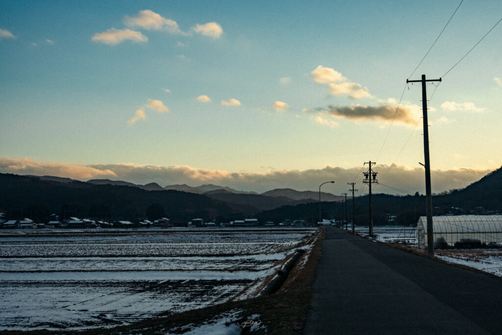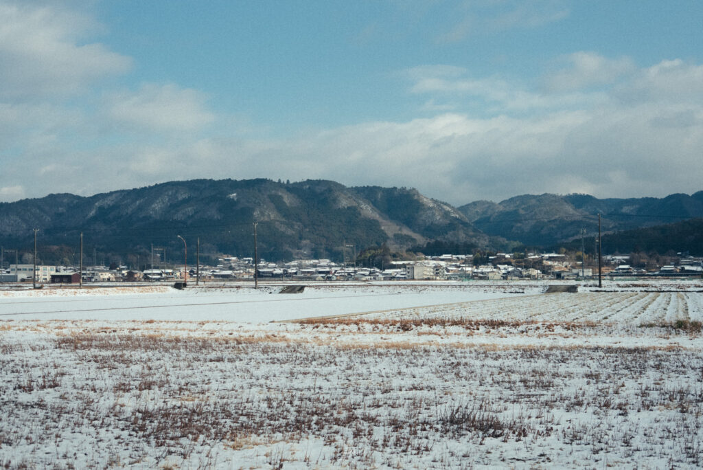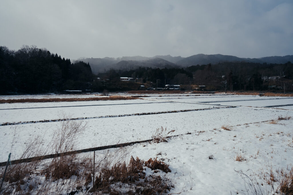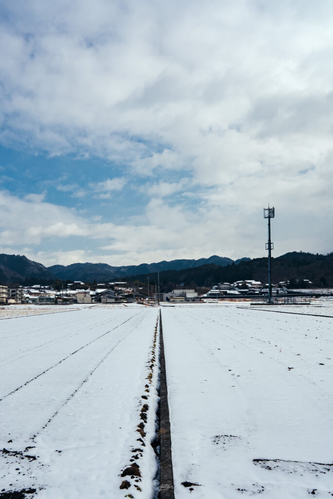 途中で雪が降ってきました。ちょっと溶けかけていましたがまた補給された感じです。このあたりは田んぼが広いので緑の季節が楽しみです。