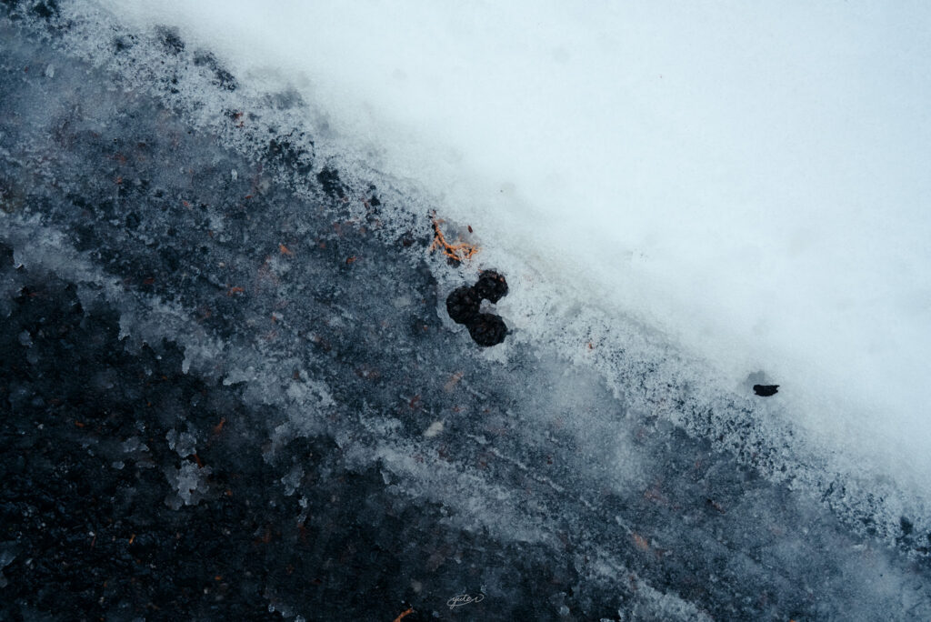 雪が綺麗に残っているところを探して撮影。これとか何を撮ってるかわかりませんが綺麗です。