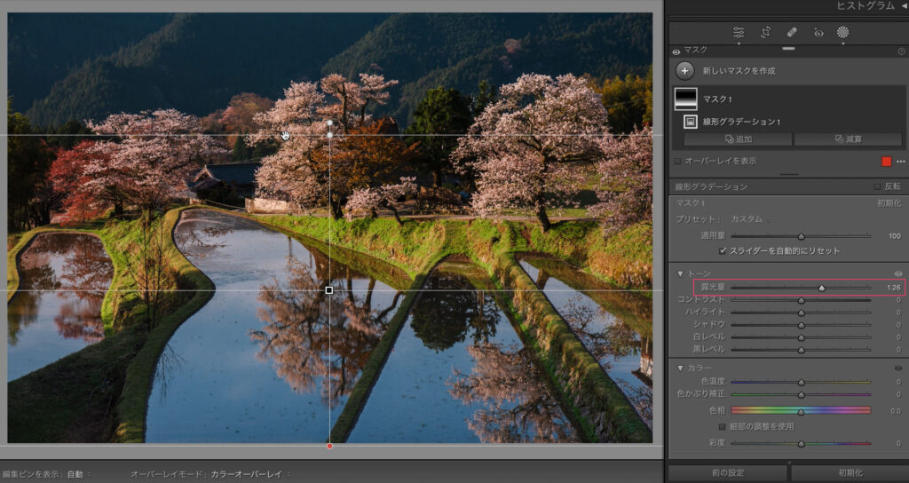 - 桜とリフレクションがある風景の現像を前提とした撮影