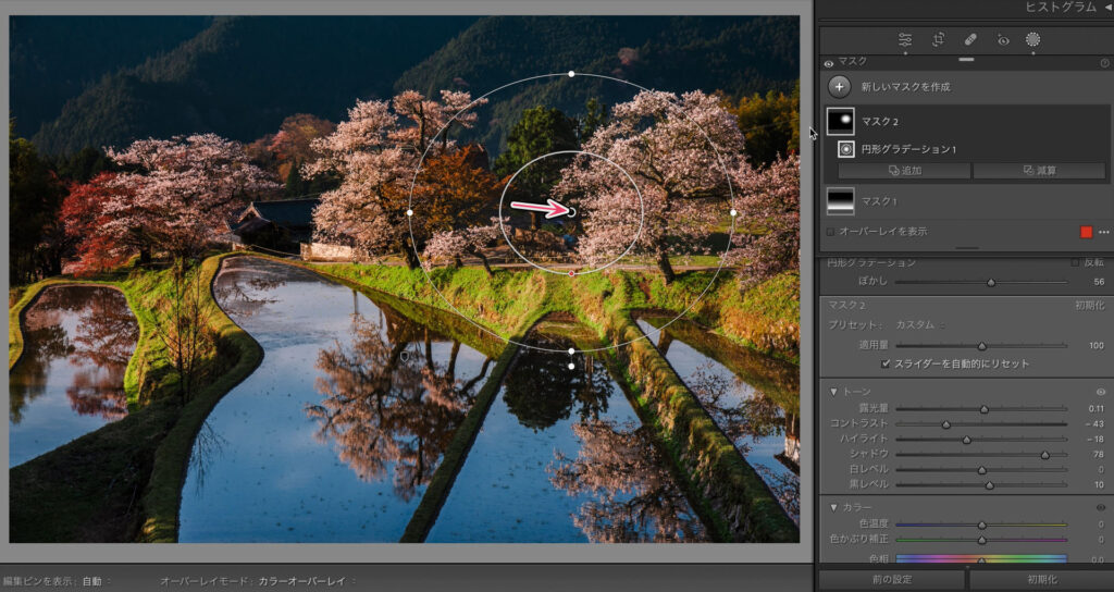 全体的な雰囲気は良いのですが、一部分だけコントラストがキツくなりすぎたところを個別でマスクがけします
